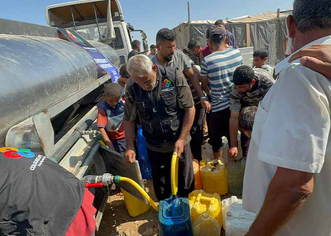 Following 7 October 2023, people in Gaza have had only 4.74 litres of water per person per day for all uses including drinking, cooking, and washing, which is a dramatic 94% reduction in the amount of water available before. In the event that a million people seek shelter from bombardment in the Israeli-designated ‘Al Mawasi safe zone’, the area could become the most densely populated in the world with the potential to provide a ridiculous, mere 2.48 litres per person per day. Since our boreholes and desalination plants have been destroyed, we provide thousands of litres via water tankers.